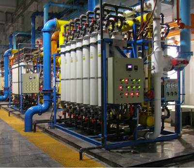 進行周期反洗在超濾膜的正常運行操作中是必不可少的一個關鍵環節,超濾反洗分為普通反洗和化學增強反洗。對于水質比較差的原水,需要在普通反洗的同時,增加化學增強反洗。化學增強反洗,根據水質情況選擇酸(鹽酸)或堿洗(氫氧化鈉),或者二者均選用,一般是酸洗和堿洗連續執行或若干次酸洗后執行堿洗。超濾反洗用水一般采用超濾產水,普通反洗的耗水量一般為超濾產水量的2~4倍,化學增強反洗的耗水量一般為超濾產水量的1~2倍,反洗耗水量較大。因此,為了節約用水,很多超濾裝置設計采用反滲透濃水作為超濾反洗水源。當反滲透濃水中硬度不高的情況下,可以采用反滲透濃水反洗超濾;但是,當反滲透濃水中硬度較高的時候,進行加堿(氫氧化鈉)化學增強反洗時,堿(氫氧化鈉)與水中的鈣鎂離子反應生成氫氧化物沉淀在超濾膜表面,容易造成超濾膜結垢。