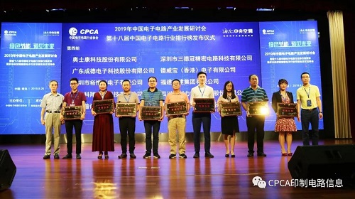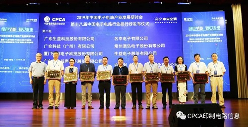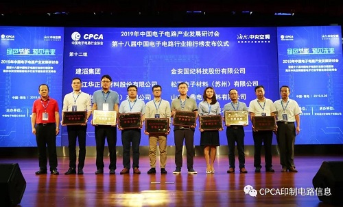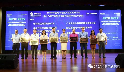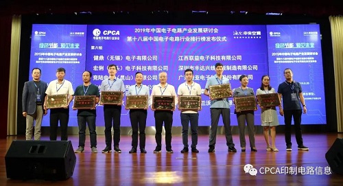 2019年第十八屆中國電子電路行業(yè)排行榜頒獎典禮盛大舉行