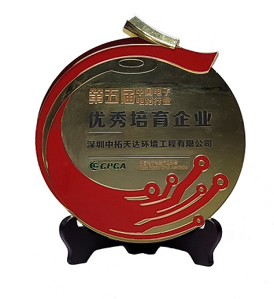 會議期間,向被評選為第五屆中國電子電路行業優秀企業頒發獎牌和證書,深圳中拓天達環境工程有限公司榮獲“優秀培育企業”。
